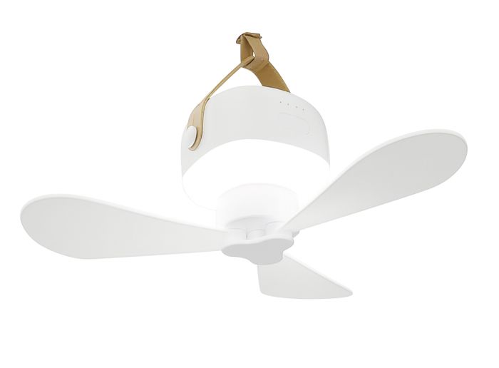 Nach einem geselligen Abend draußen öffnest du das Fenster ein Stück und kuschelst dich gegen Mitternacht unter die Decke. Du löst den Standfuß und hängst den Ventilator an einen Haken über deinem Kopf. Das Nachtlicht geht an: nicht zu hell, genau richtig. Mit drei Stufen auf der Fernbedienung wählst du, ob du etwas Stimmungslicht möchtest oder gerade genug, um nachts den Weg zur Toilette zu finden, ohne dir den Kopf zu stoßen.