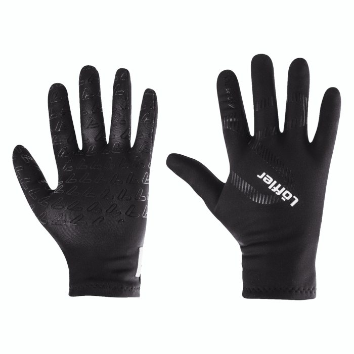 Wärmeisolierende und ergonomisch geformte Handschuhe mit Silikondruck auf der Innenhand von Löffler.
