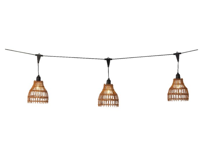 Diese Lichterkette besteht aus 5 warm-weißen LED-Lichtern an einer Schnur. Die Lichter sind mit einem ca. 5 m langen Kabel einfach an das Stromnetz anzuschließen. Die Gesamtlänge inkl. Lichter beträgt 7 m. Diese Lichterkette hat einen IP-Wert von IP44 und ist demzufolge staub- und spritzwassergeschützt.