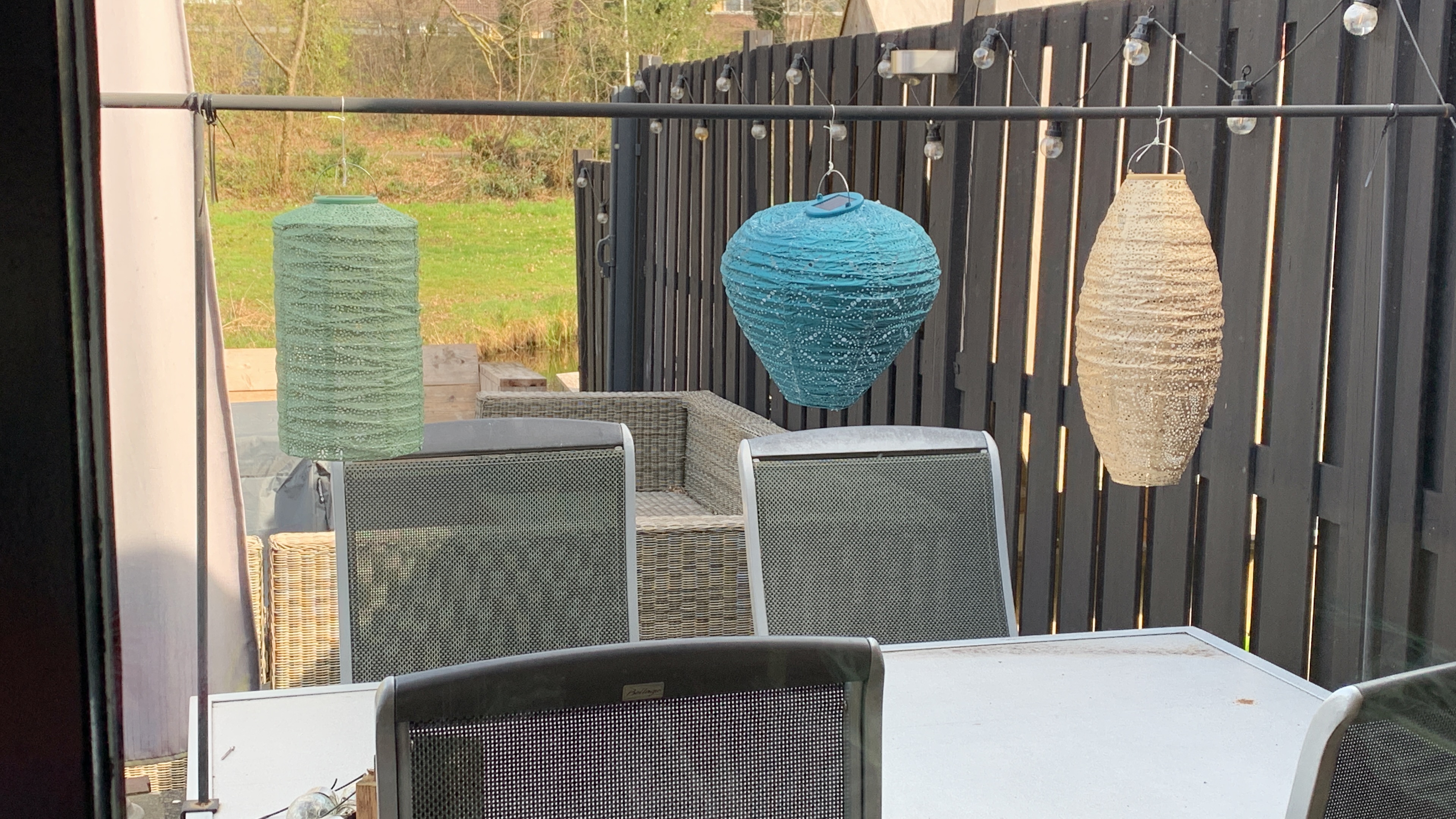 Der Lumiz Mandela Balloon 30 Lampions Green kann ständig draußen hängen bleiben und lädt sich durch Sonnenenergie auf!