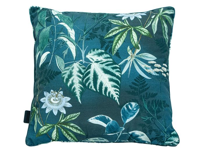Das Madison Mauel Blue 50 x 50 ist ein quadratisches Dekokissen mit einem fröhlichen Print auf einem blauen Hintergrund.