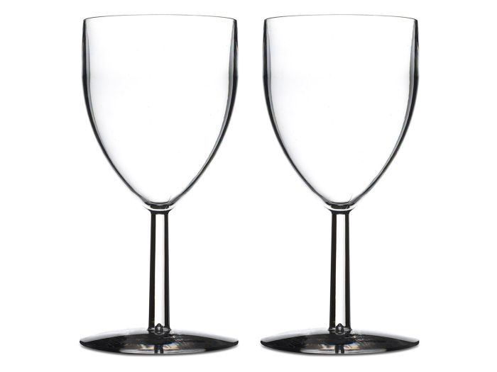 Das Mepal Weinglas San hat einen Inhalt von 300 ml, wird als 2er Set geliefert und ist aus kristallklarem und langlebigem Kunststoff.