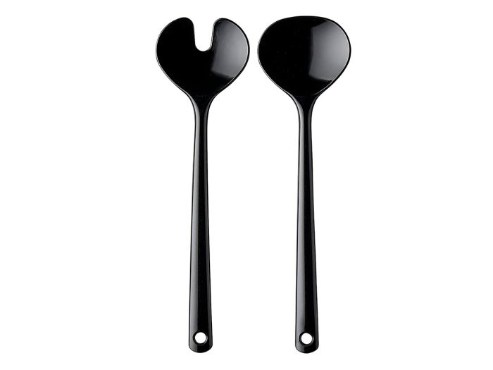 Großes Salatbesteck Synthesis in der Farbe Schwarz. Dieses zweiteilige Salatbesteck besteht aus einem großen Salatlöffel und einer großen Salatgabel und passt perfekt zu den Salatschalen Synthesis. Das Salatbesteck hat ein geringes Gewicht und kann nach Benutzung in den Geschirrspüler.