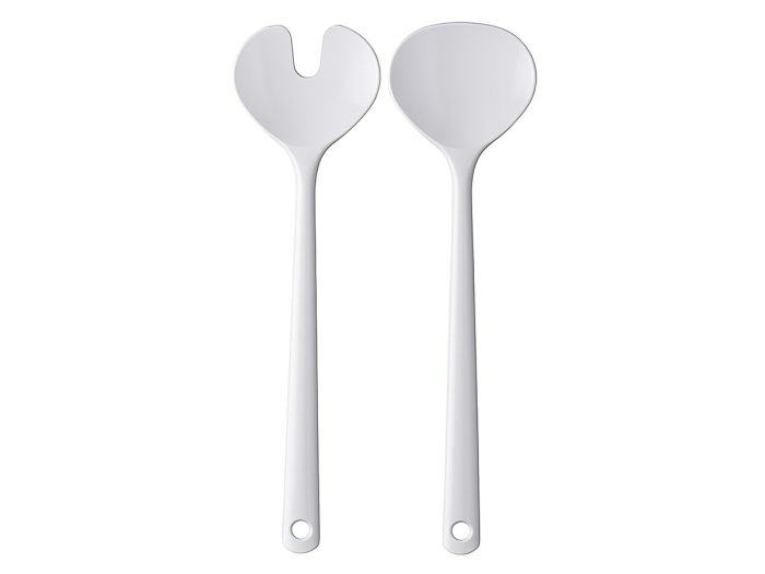 Großes Salatbesteck Synthesis in der Farbe Weiß. Dieses zweiteilige Salatbesteck besteht aus einem großen Salatlöffel und einer großen Salatgabel und passt perfekt zu den Salatschalen Synthesis. Das Salatbesteck hat ein geringes Gewicht und kann nach Benutzung in den Geschirrspüler.