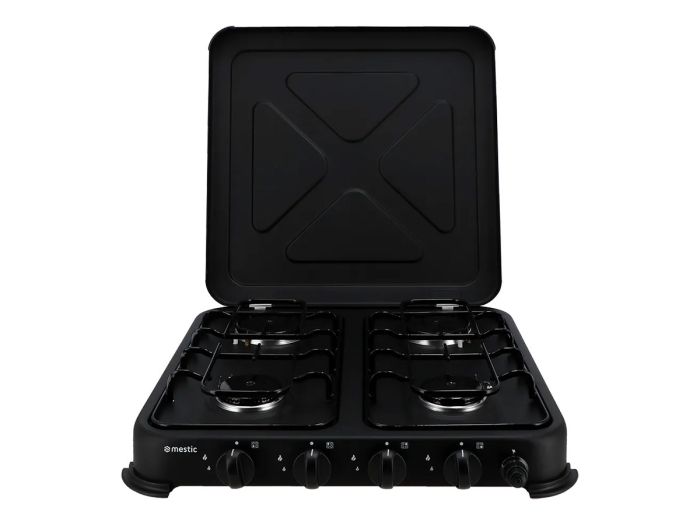 Der Mestic MGC-400 verfügt über vier Brenner: zwei kräftige Brenner von 2,2 kW und zwei Brenner von 1,2 kW. Dank der stabilen Pfannenständer können Sie problemlos vier große Pfannen gleichzeitig verwenden. Darüber hinaus sorgt die integrierte thermische Sicherheitsvorrichtung dafür, dass die Gaszufuhr automatisch unterbrochen wird, wenn die Flamme erlischt, so dass kein Gas austreten kann. Die rutschfesten Füße sorgen dafür, dass der Gaskocher auch auf unebenen Flächen stabil steht.