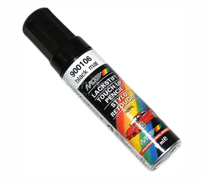 Der Lackstift mattschwarz von Motip enthält einen schnelltrocknenden Lack, der sogar einer Waschstraßenbehandlung standhält. Der Lack ist in einer 12 ml Flasche mit Schraubverschluss und integriertem Pinsel zum Ausbessern kleinerer Schäden verpackt. Die Deckkraft ist hoch.