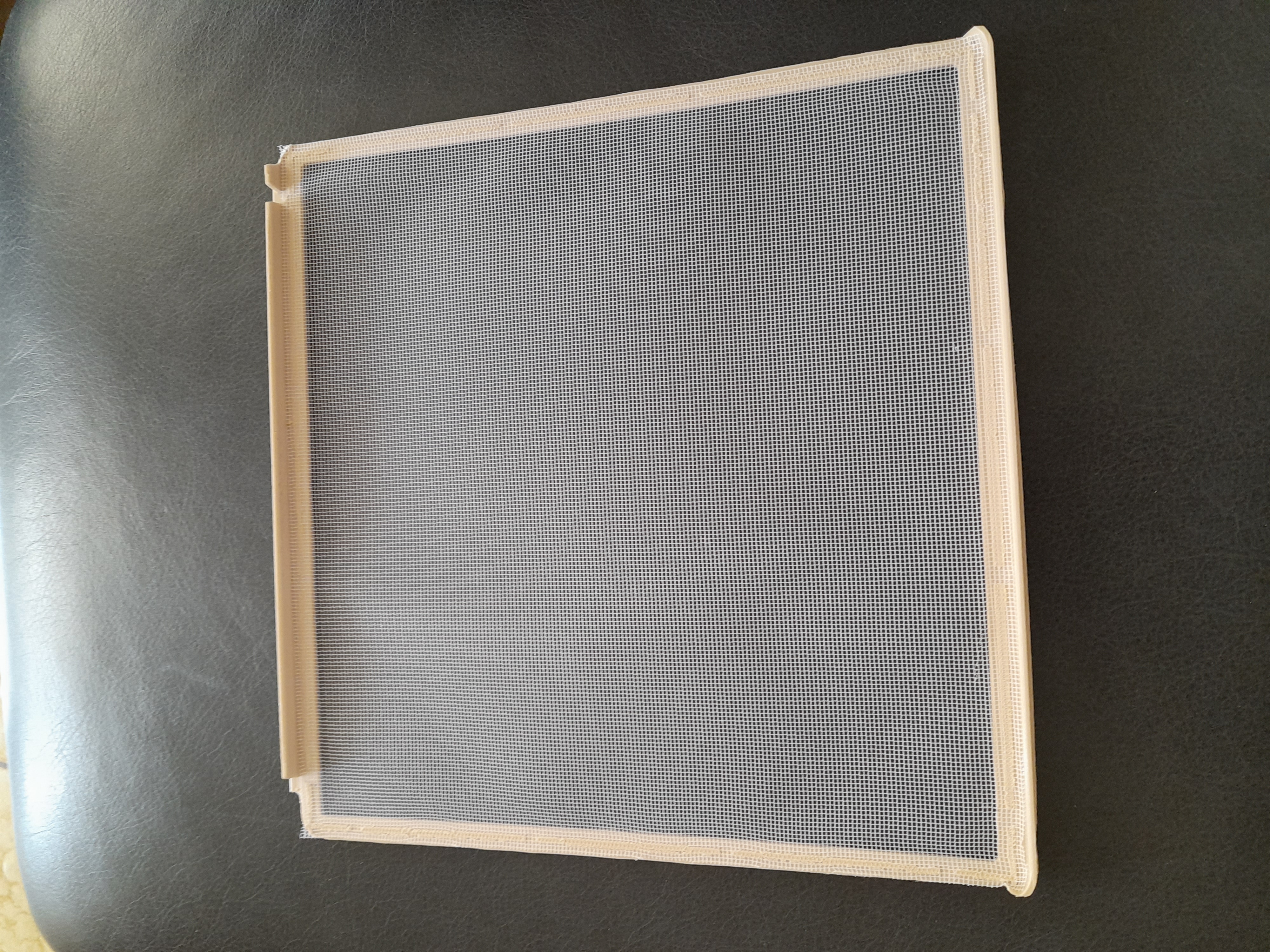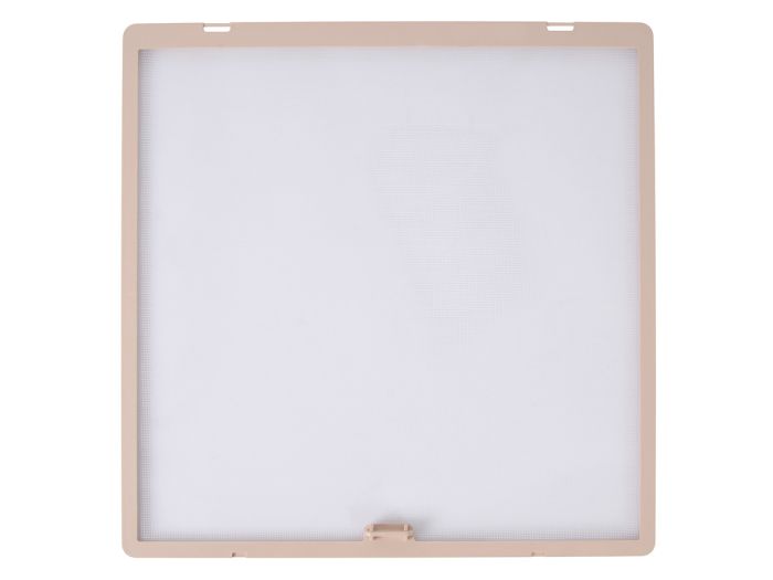 Das Fliegengitter hat Scharniere an der Innenseite. Die Abmessungen betragen 25,5 × 25,5 cm.