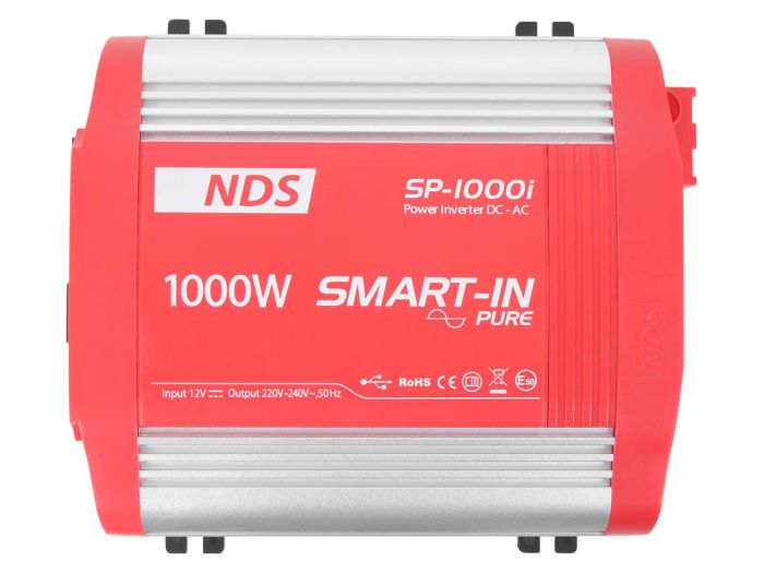 Der NDS Smart-in 12/1000l Wechselrichter ist ein reiner Sinuswechselrichter und hat eine Ausgangsleistung von 1000 Watt.