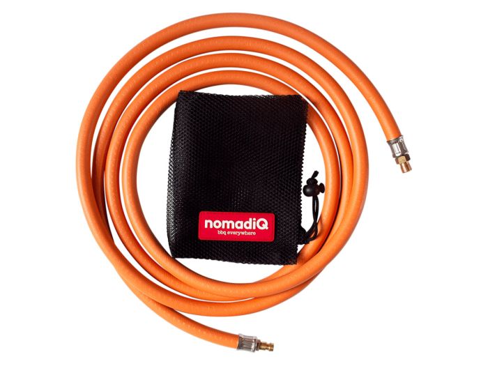 Mit diesem Gasverlängerungsschlauch kann der nomadiQ BBQ über den serienmäßigen nomadiQ Splitschlauch mit Druckverteiler direkt an den externen Gasanschluss eines Reisemobils angeschlossen werden.