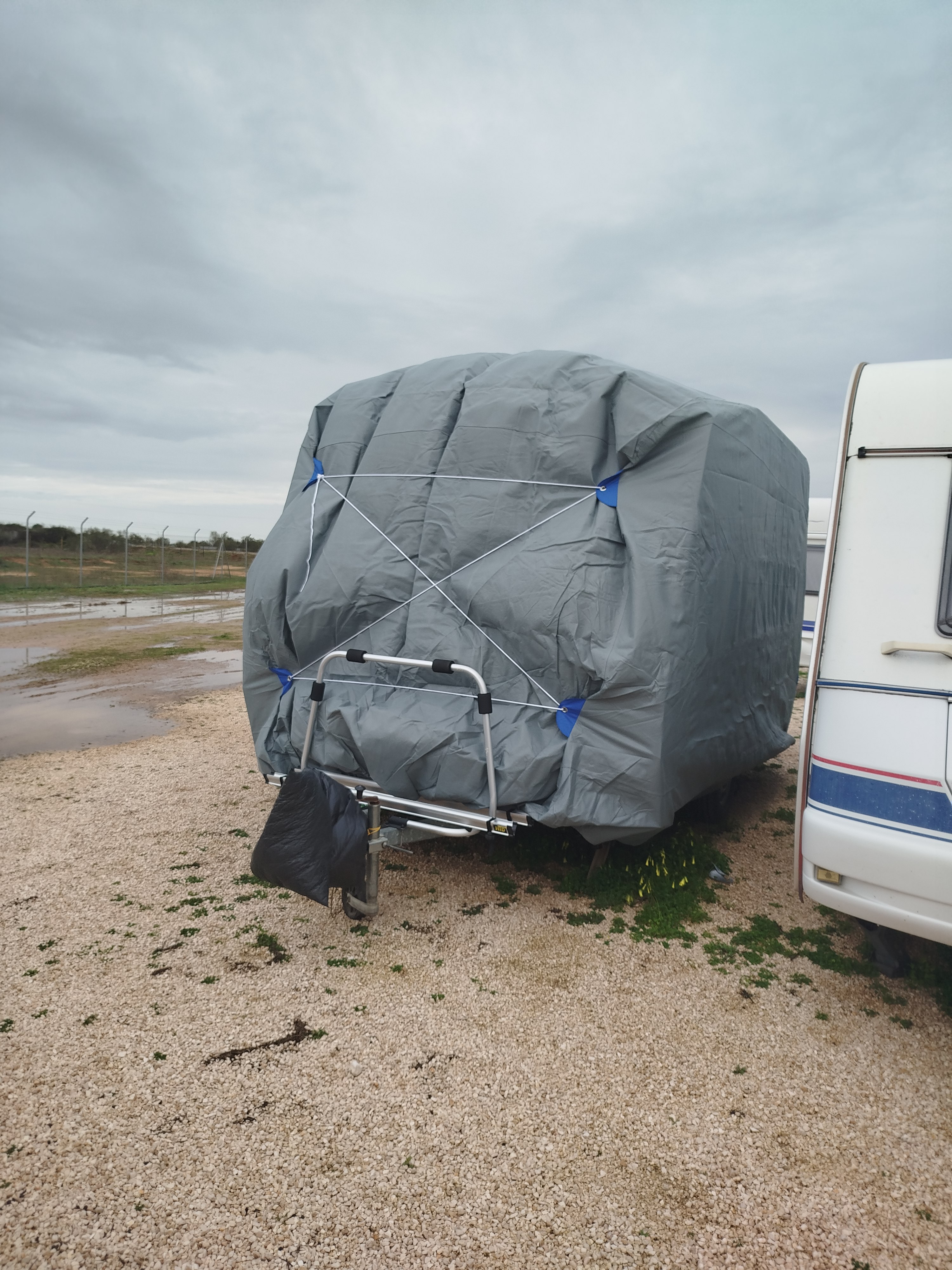 Elastisches Band für eine bessere Passform, Zugang zum Wohnwagen möglich, Verstärkte Ecken, Verstärkte Ösen, Geeignet für alle Jahreszeiten