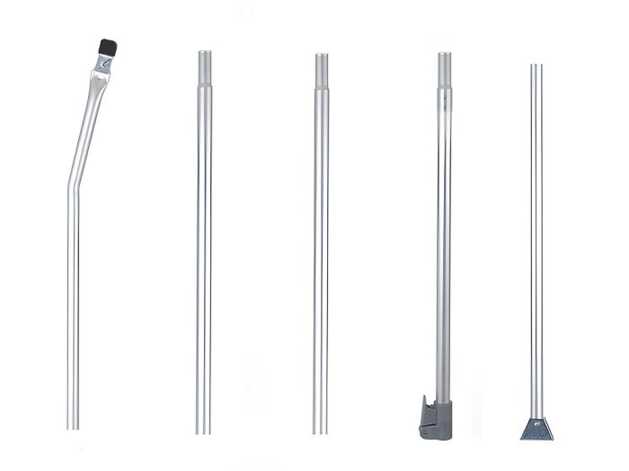 Die Obelink Aluminium Andruckstange Quick ist mit einem Quick-Klemmmechanismus und zwei verschiedenen Spannbacken für Rohre mit unterschiedlichen Durchmessern ausgestattet.
