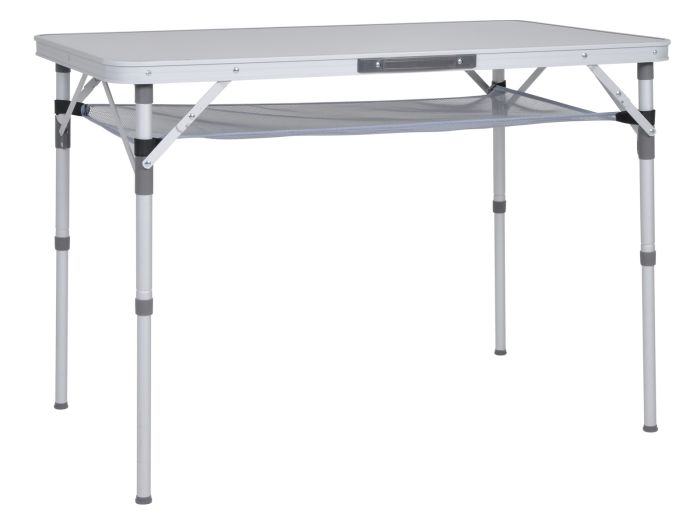 Wenn Sie wenig Platz haben, ist ein großer Tisch ziemlich unpraktisch. Entscheiden Sie sich also für diesen kompakten Granada Campingtisch mit einer Größe von 100 x 60 cm. Der Tisch kann in zwei Höhen eingestellt werden: 40 cm und 70 cm. Unter der Tischplatte befindet sich ein praktisches Netz, damit Sie Ihr Buch oder Ihre Zeitschrift immer in der Nähe haben.