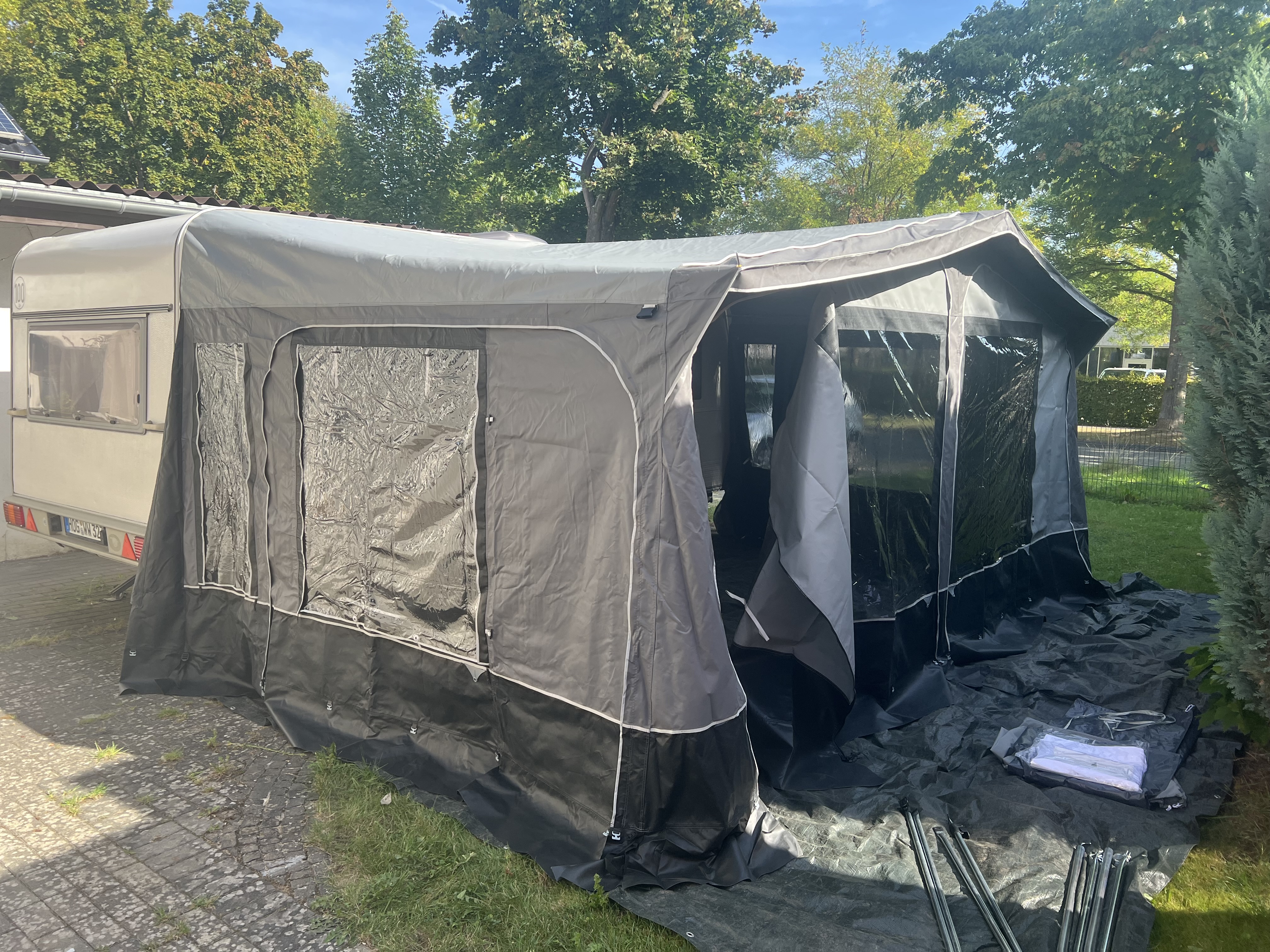 Tragetasche, Heringe, Bodenschürze, Gardinen, Gerade Radkastenabdeckung für einachsigen Wohnwagen, Zeltspanngummis, Gestänge