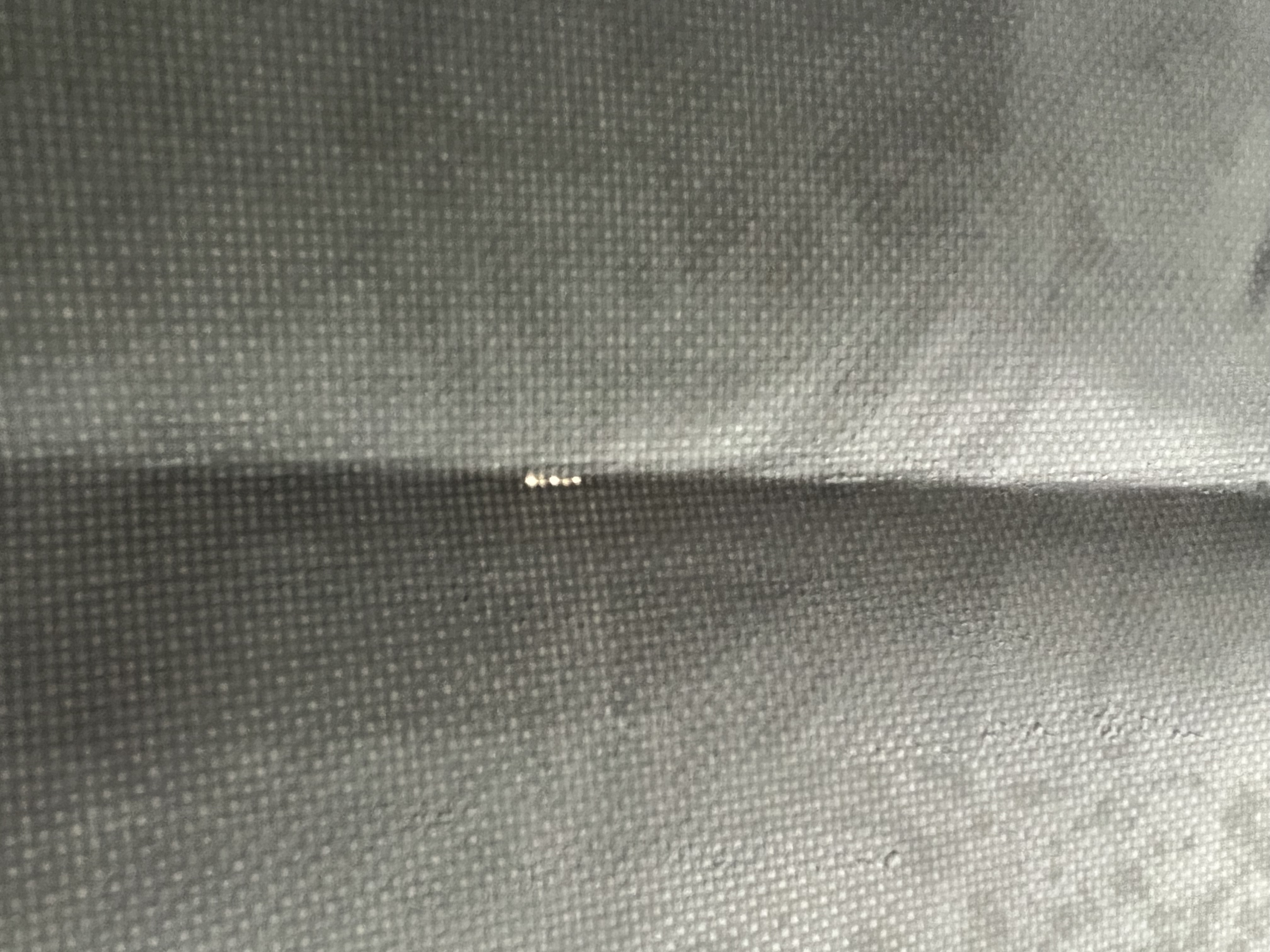 Die linke Seitenwand, wenn man das Zelt von vorne betrachtet.