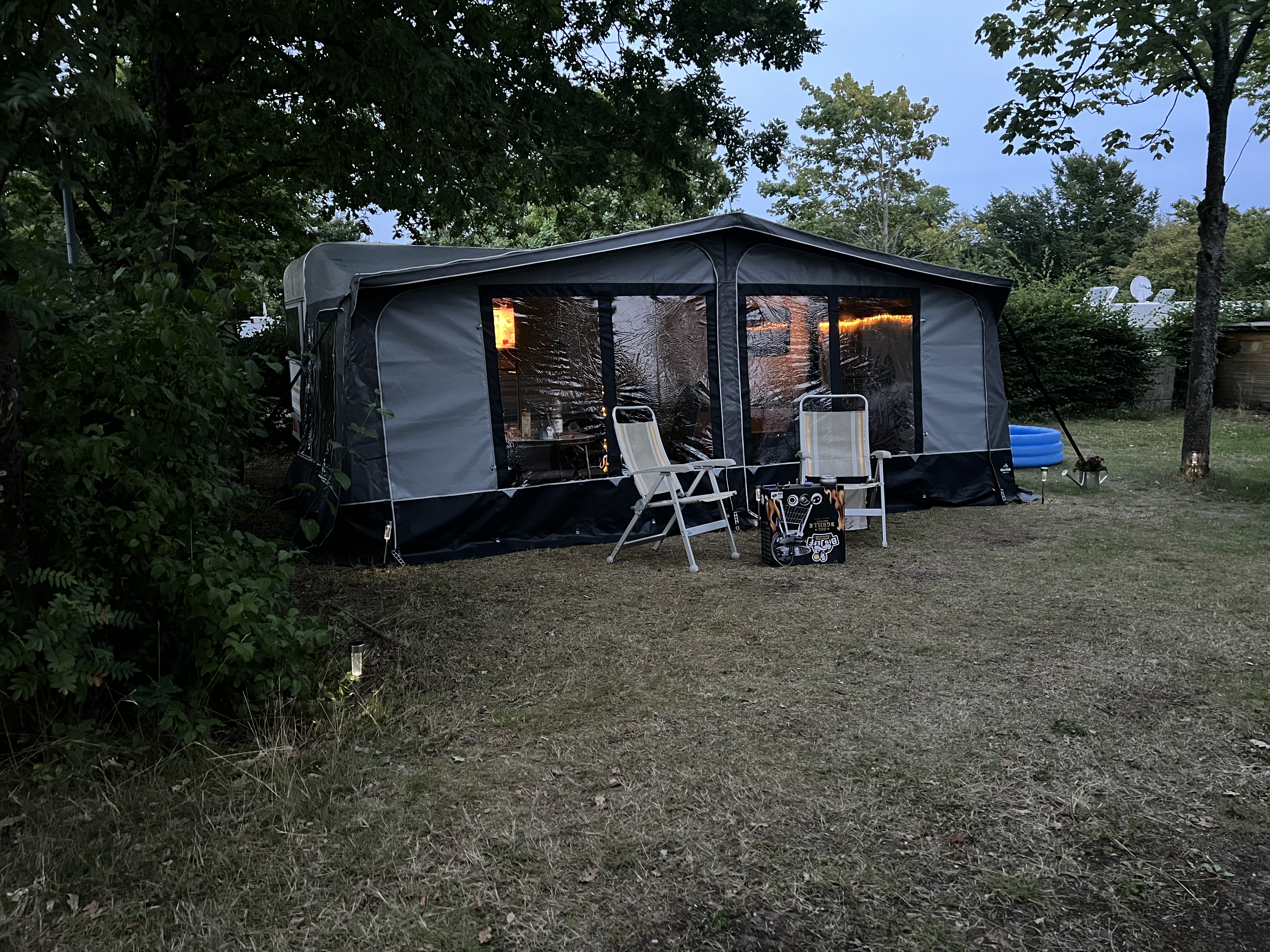 Ein Dachüberstand, der bei den meisten traditionellen Wohnwagenvorzelten erhalten ist.