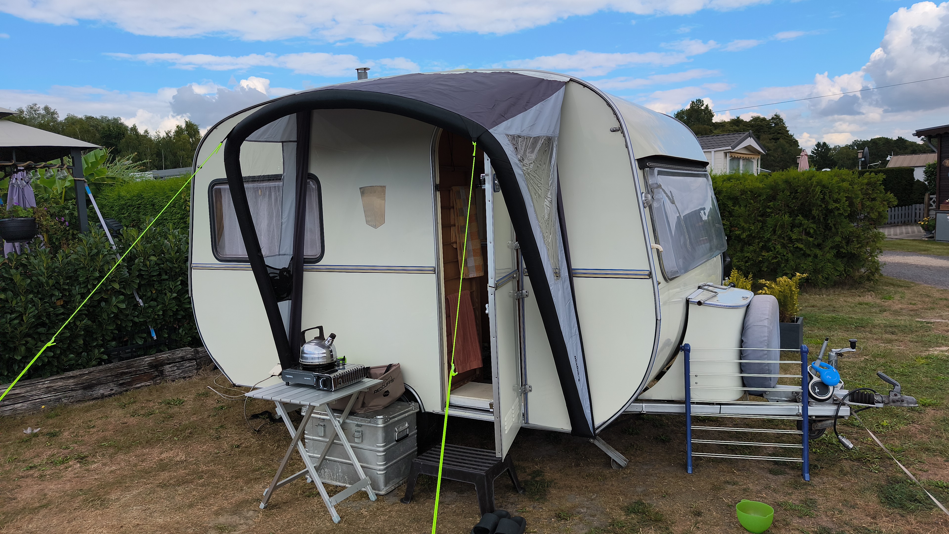 Ein Dachüberstand, der bei den meisten traditionellen Wohnwagenvorzelten erhalten ist.