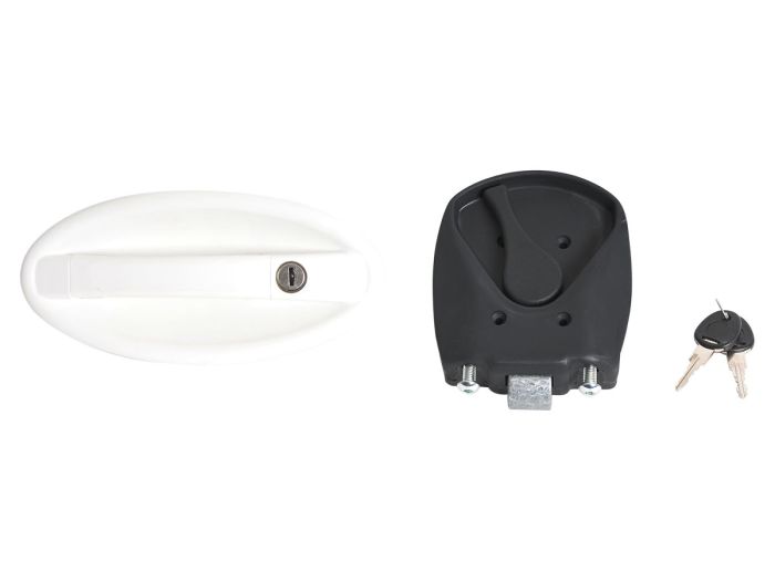 Das Obelink Handgriff Türschloss ist ein robustes Türschloss, das aus einem Innen- und einem Außenteil besteht. Diese Türschlösser werden in vielen Wohnmobilen und Wohnwagen eingesetzt.