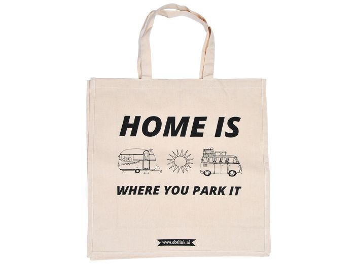 Die Obelink Home is where you park it Canvas Tasche ist eine geräumige Tasche mit einem schönen Camping-Zitat.
