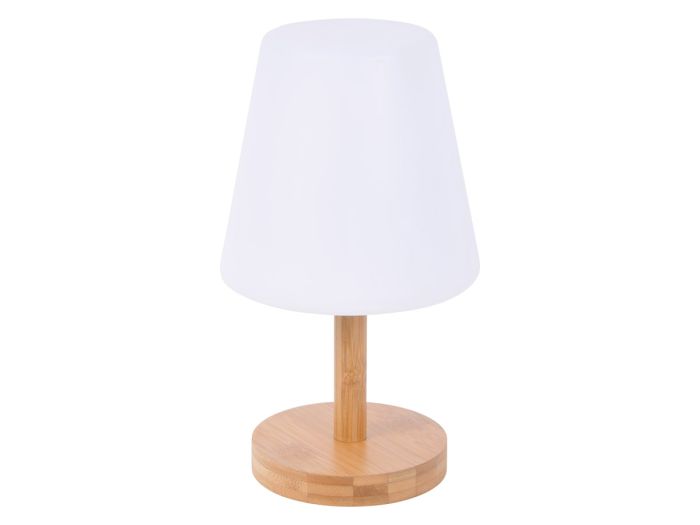 Möchten Sie Ihren Campingplatz trendig einrichten? Dann entscheiden Sie sich für diese Tischleuchte von Obelink. Das klassische Modell und die modernen Materialien bilden zusammen ein trendiges Ganzes. Die Tischlampe hat einen Bambusfuß mit einem mattweißen Kunststoffschirm auf der Oberseite. Die Lampe ist leicht, handlich und ganz anders als die meisten Campinglaternen.