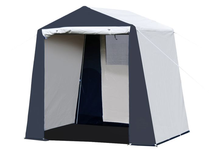 Das PVC Material ist stabil und langlebig. Dank dem qualitativ hochwertigen Material ist das Küchenzelt auch für eine lange Nutzung, zum Beispiel auf Saisoncampingplätzen, geeignet. Das Material ist wetterbeständig und abwaschbar.