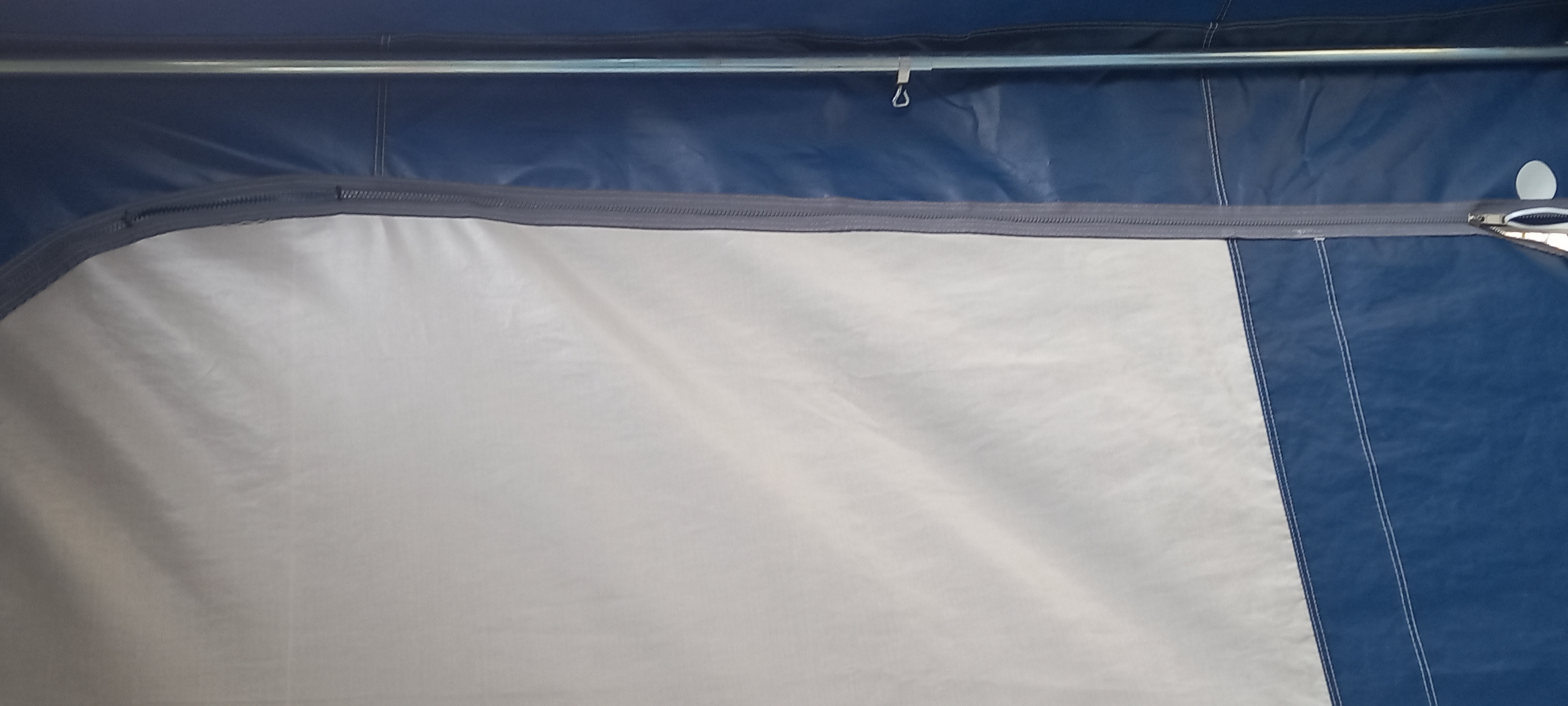 Die linke Seitenwand, wenn man das Zelt von vorne betrachtet.