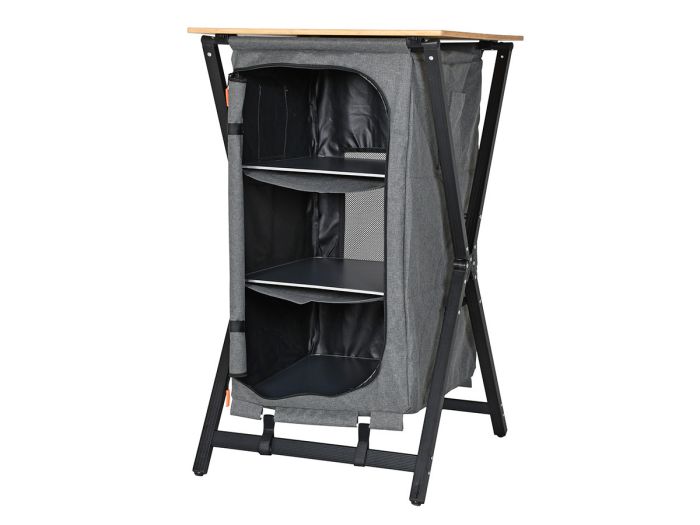 Dank des faltbaren Designs und der mitgelieferten Tragetasche können Sie diesen Schrank mühelos zu jedem Campingplatz mitnehmen. Mit den Maßen 60 x 57 x 98 cm bietet er überraschend viel Stauraum, ohne viel Platz zu beanspruchen.