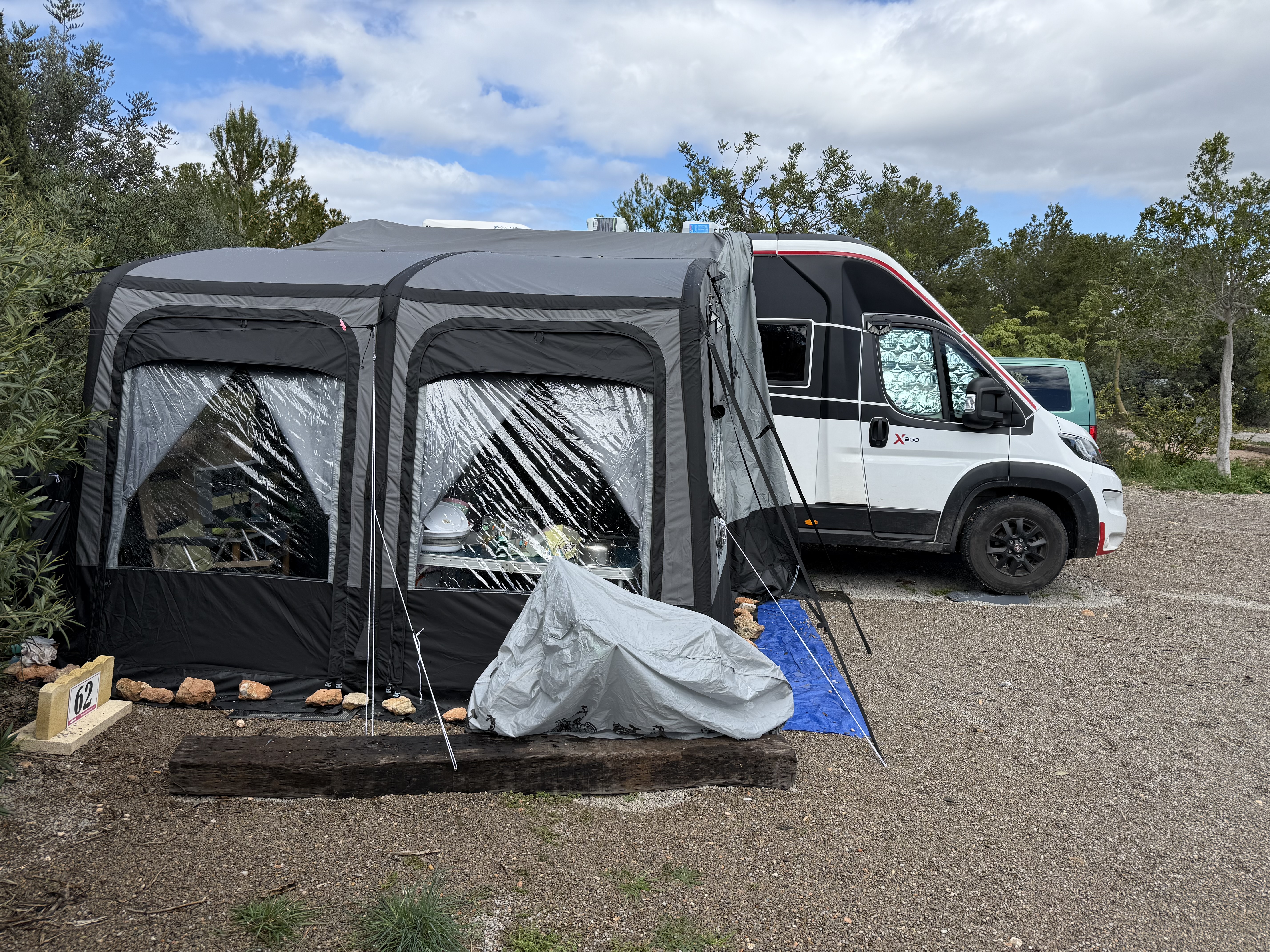 Ein freistehendes Zelt kann auch ohne Wohnmobil oder Bus an Ort und Stelle bleiben. Das ist besonders praktisch, wenn man öfters mit dem Fahrzeug losziehen will, ohne jedesmal das Zelt auf- und abbauen zu müssen.