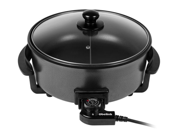 Die Obelink PD-3818 Multifunktionspfanne verfügt über Cool Touch Griffe, rutschfeste Füße und ein abnehmbares Kabel mit Thermostat. Dadurch ist diese Pfanne sehr praktisch in der Anwendung. Dank der Antihaftbeschichtung brennt Ihr Essen nicht an und lässt sie sich sehr leicht reinigen.