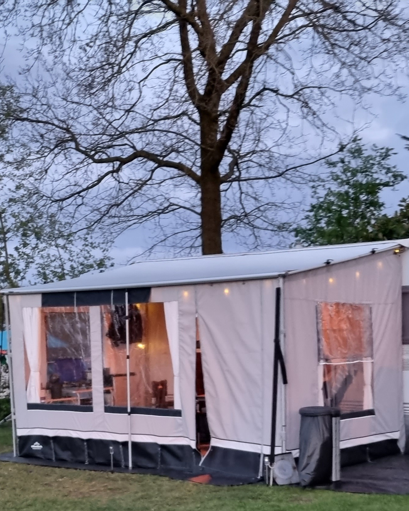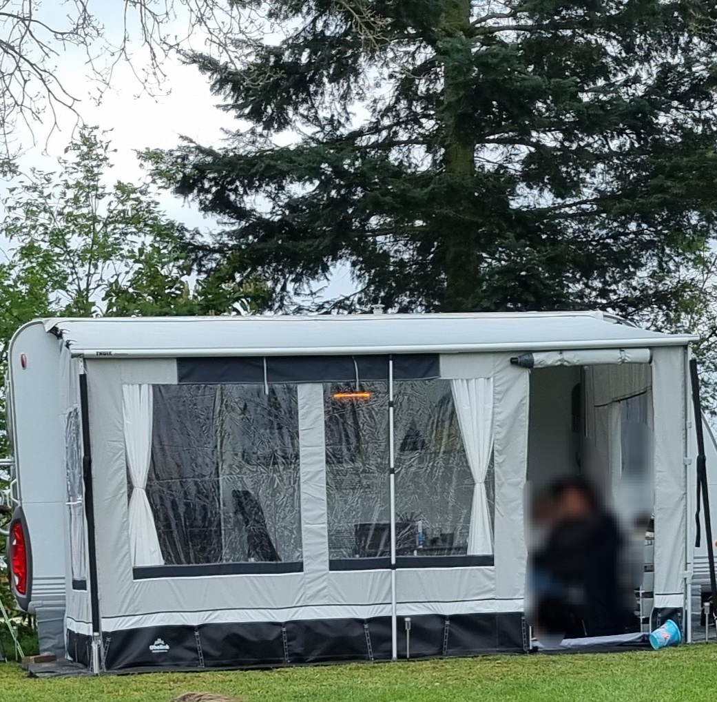 - Zwei Andruckstangen, um die Seitenwände fest gegen die Wohnwagenwand zu drücken