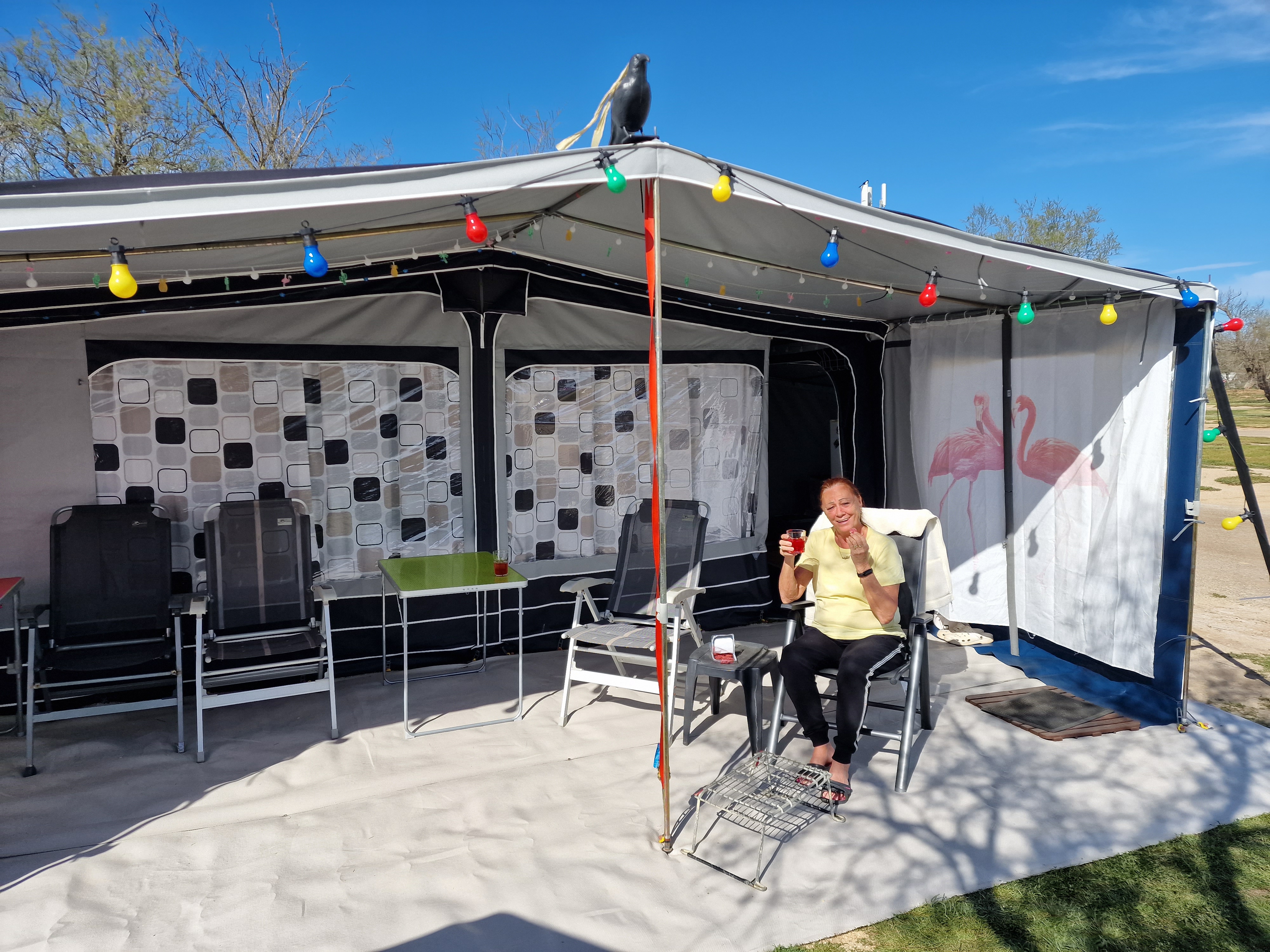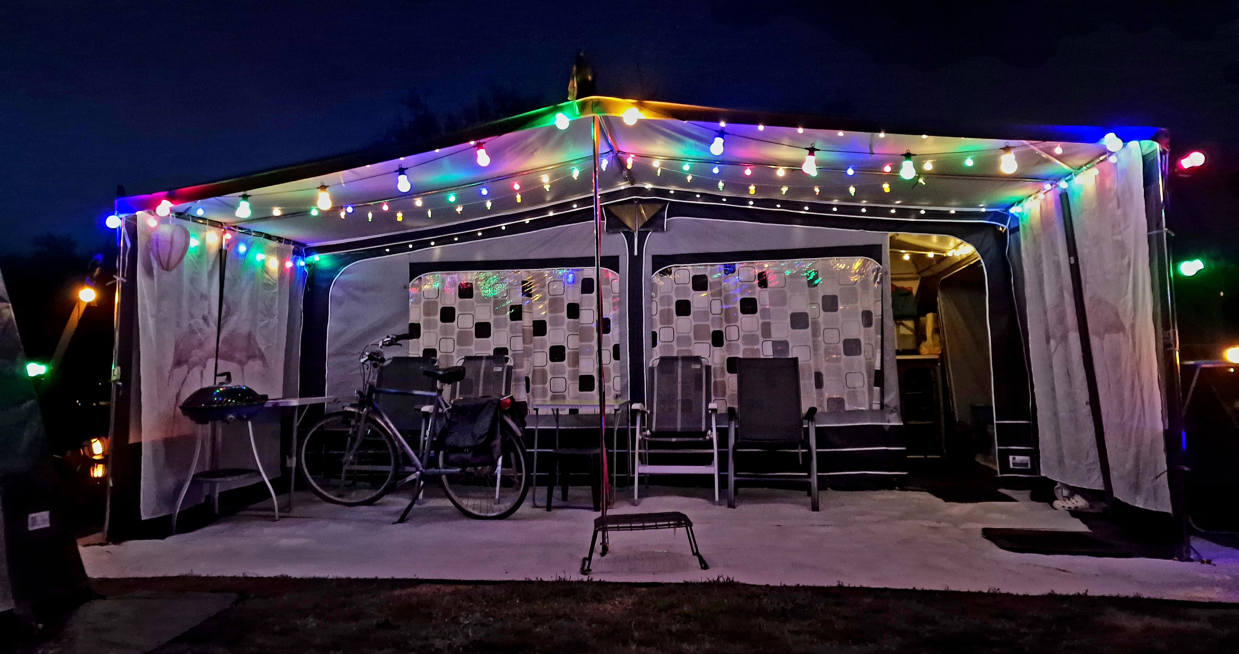 Eine Schnur am Keder zur Befestigung von (optionalen) Clips, in die Sie Dachbalken einhaken können. Dank dieser Schnur müssen Sie keine Ösen an die Wohnwagenwand schrauben, um Dachbalken zu verwenden.