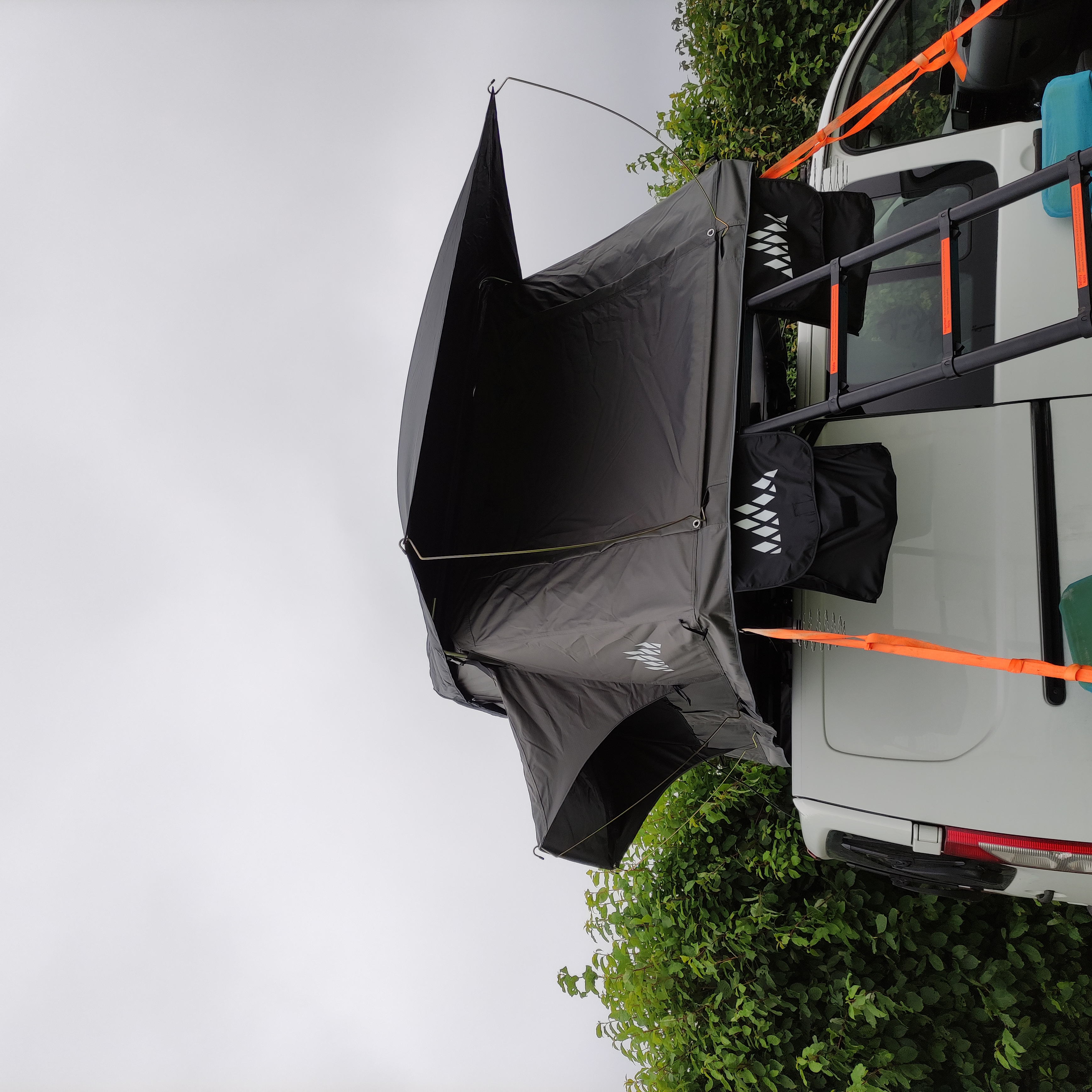 Die Montage des Dachzelts ist kinderleicht. Das Skyfold ist an der Unterseite mit 2 vormontierten Führungsschienen und 4 Montagebügeln zur Befestigung an den Dachträgern des Autos ausgestattet. Die Montagebügel sind mit einer Schutzschicht versehen, die Schäden an den Dachträgern verhindert. Die Montage ist vergleichbar mit der Montage eines Dachkoffers. Die Trägerstangen der Dachträger müssen zwischen den Trägerfüßen mindestens 70 cm lang sein. Der Abstand zwischen den Dachträgern sollte 60-90 cm betragen.