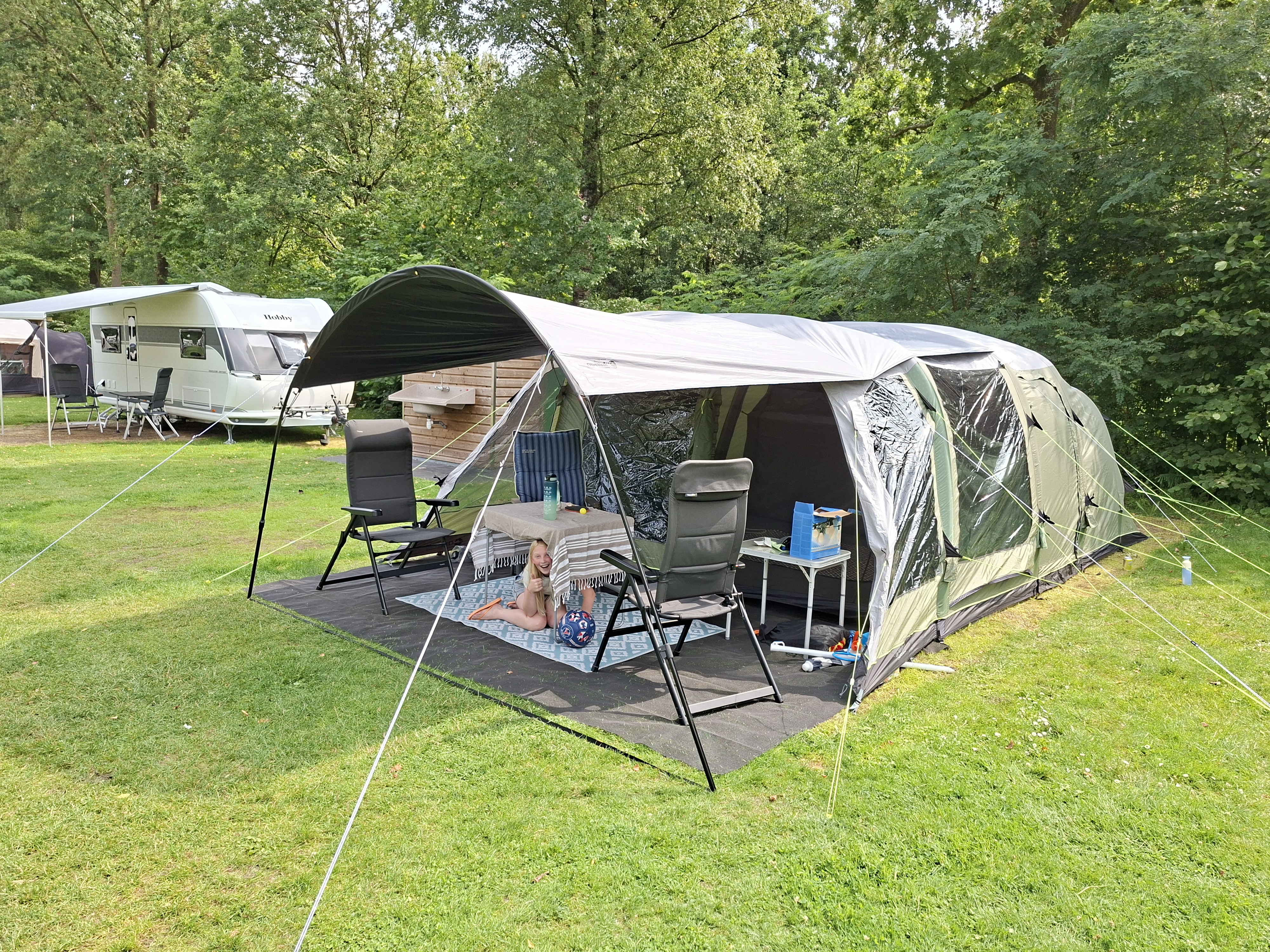 Das Zeltgewebe hat eine Länge von 4,60 m! Da das Zeltvordach sehr vielseitig ist, können Sie selbst entscheiden, wie weit Sie es über das Zelt spannen. Reicht Ihnen ein Vordach mit einer Länge von 150 cm? Dann ziehen Sie den Stoff weiter über das Zelt. Sind Sie mit der ganzen Familie unterwegs und benötigen mehr Platz? Auch das ist möglich, das Vordach wird einfach weiter nach vorne geschoben. Da das Soleil CoolDark nur eine Bogenstange hat, kann es besonders schnell aufgebaut werden, wodurch mehr Zeit zum Entspannen bleibt.