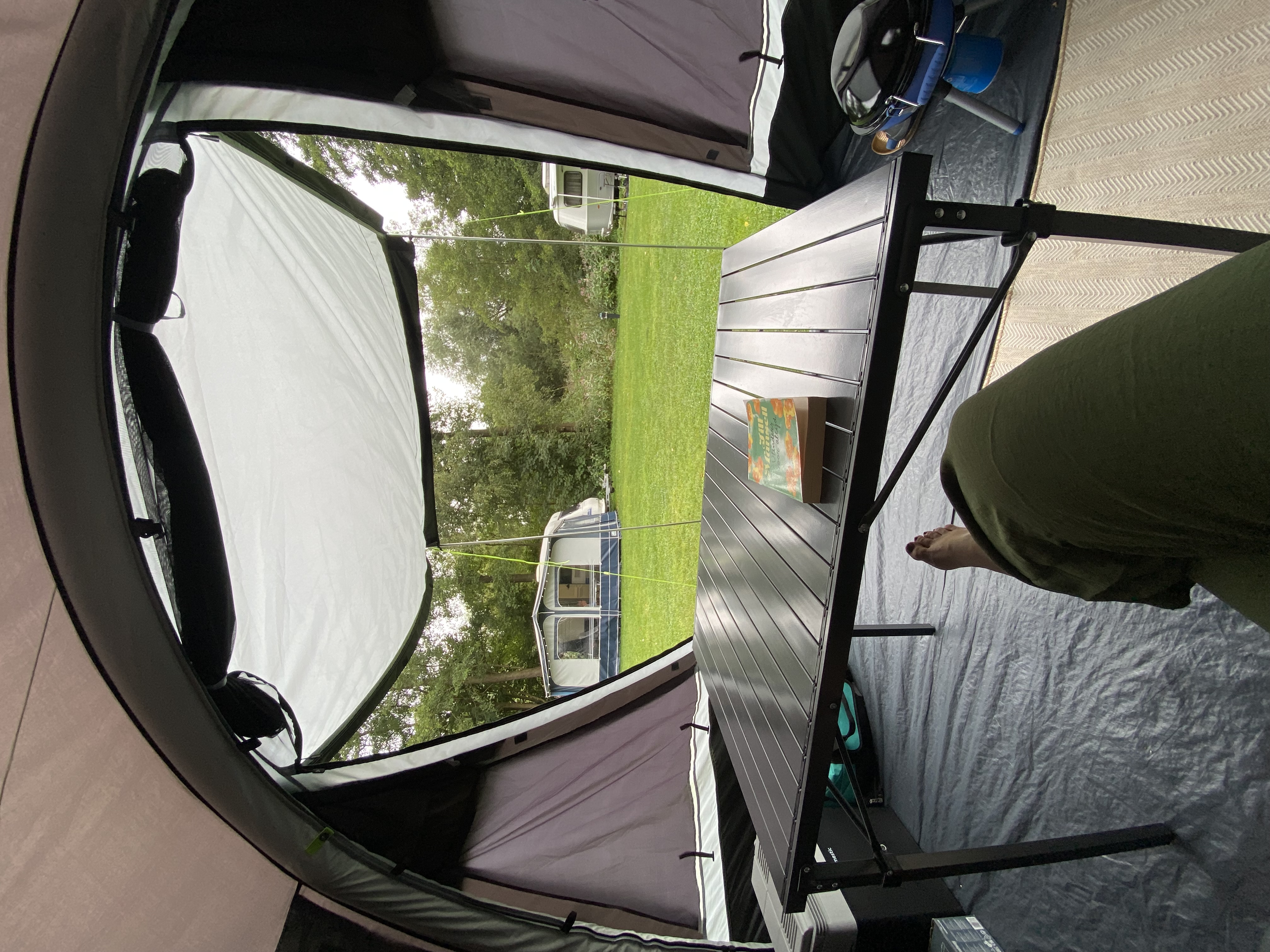 Eine abgedunkelte Schlafkabine hat eine spezielle Beschichtung, die 99% des Lichts blockiert. So bleibt es schön dunkel und kühl in dem Zelt.