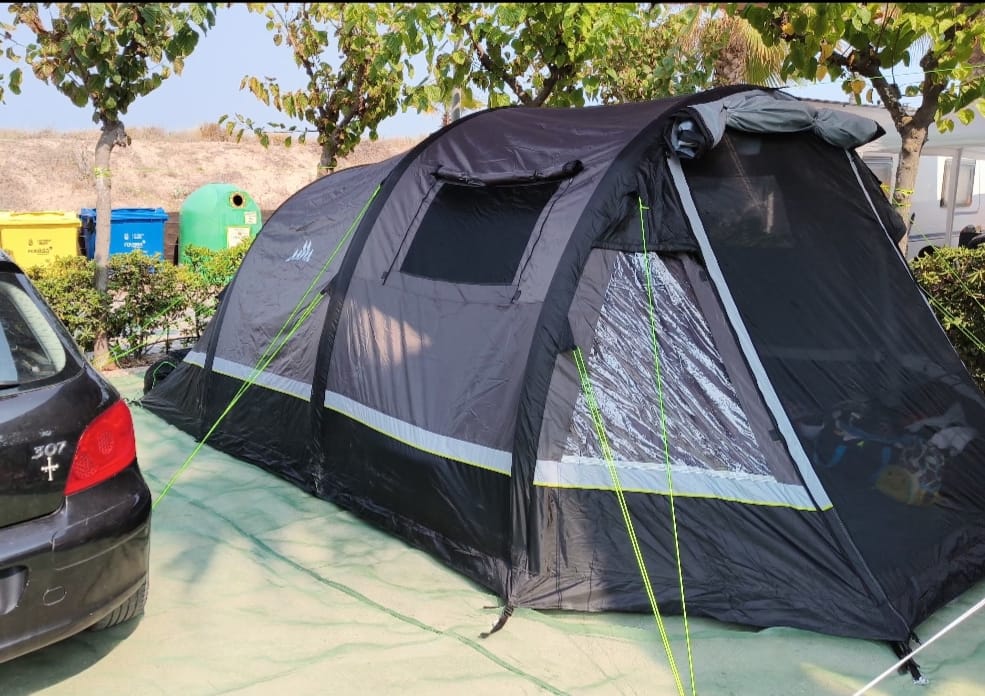 Dieses (Vor-)Zelt oder diese Markise ist mit aufblasbaren Luftschläuchen anstelle von Zeltstangen ausgestattet