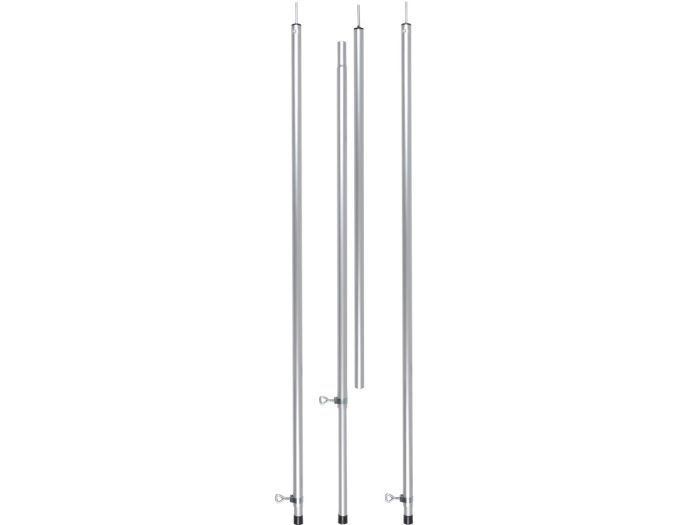 Dieses Set enthält drei verstelbare Aufstellstangen aus Aluminium von Obelink. Dieses leichte Gestänge-Set ist ideal für leichte Sonnensegel und Schattierungstücher. Die Stangen sind mittels einer Stellschraube stufenlos höhenverstellbar.
