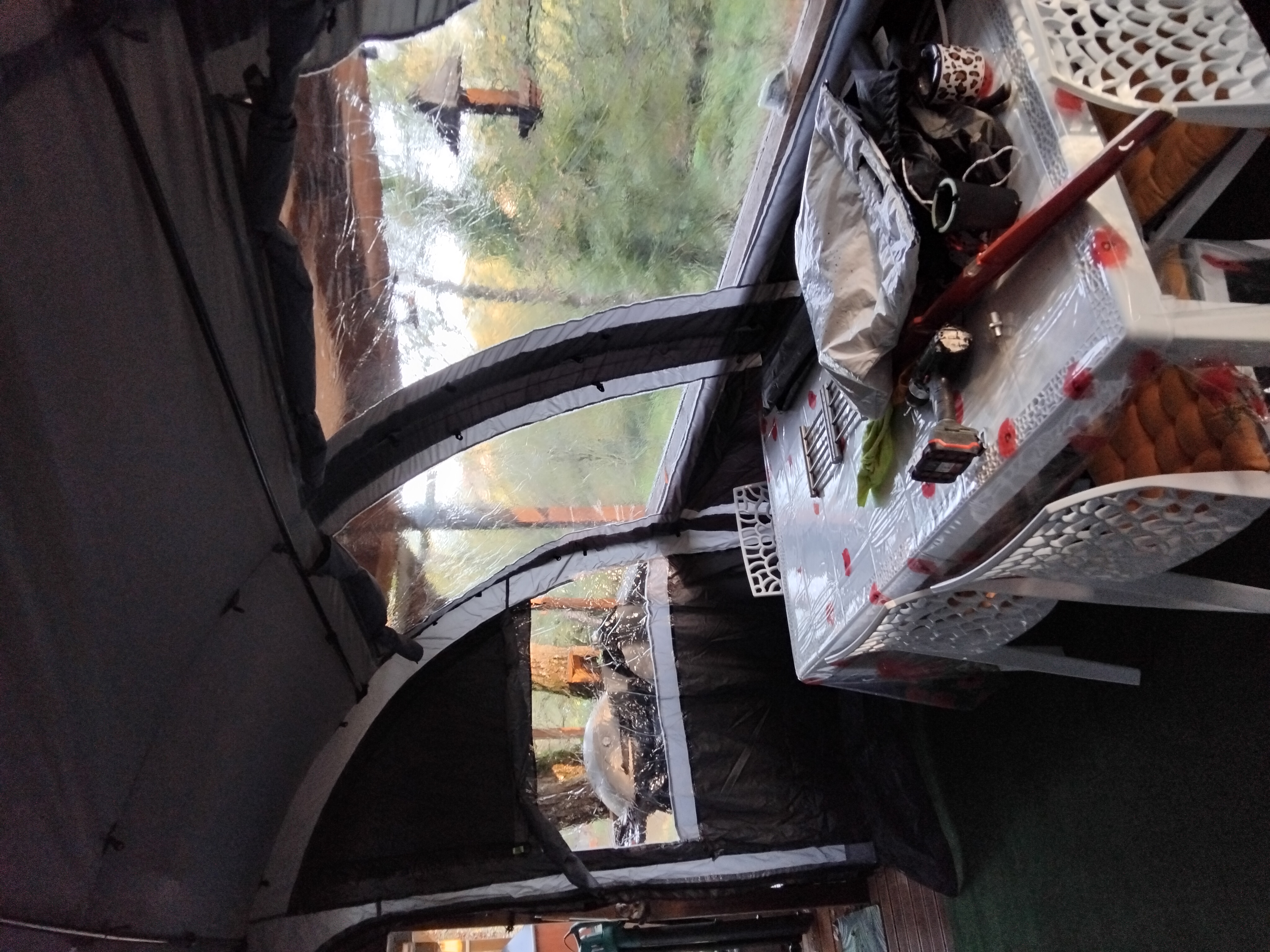 Die linke Seitenwand, wenn man das Zelt von vorne betrachtet.