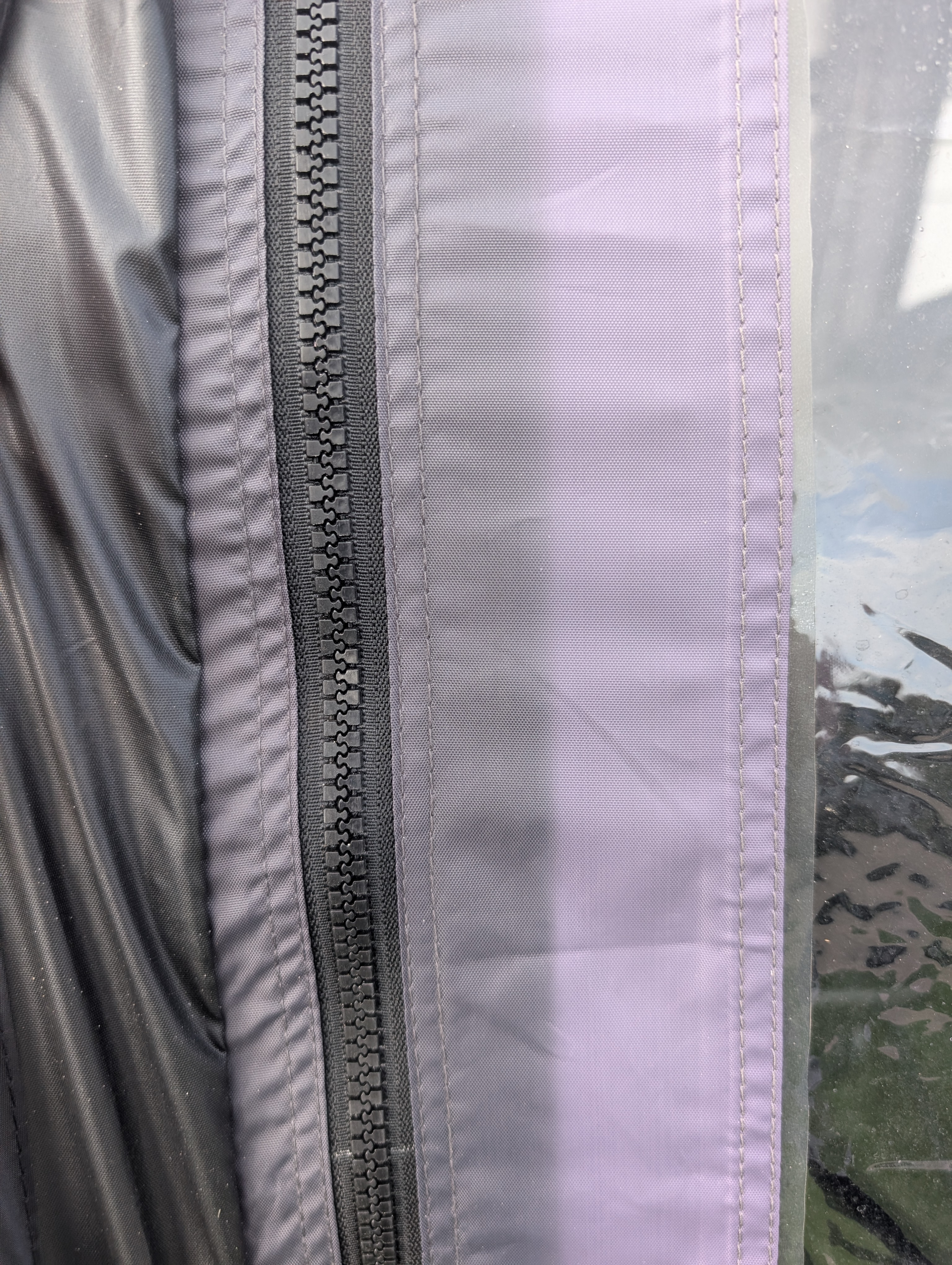 Die rechte Seitenwand, wenn man das Zelt von vorne betrachtet.