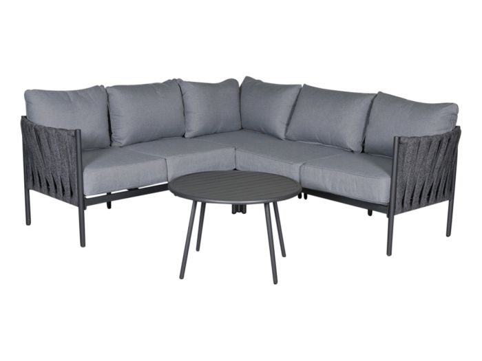 Dieses Loungeset ist auf Stil und Komfort ausgelegt. Das geräumige Ecksofa (210 x 210 x 76 x 70 cm) hat einen Aluminiumrahmen, der mit einem breiten Seilgeflecht aus wetterfestem Polyester versehen ist. Die dicken, wasserabweisenden Kissen mit Reißverschluss bieten höchsten Sitzkomfort und sind leicht zu reinigen. Der stilvolle runde Aluminiumtisch (Ø71 x 47 cm) ist mit verstellbaren Beinen ausgestattet, so dass er immer stabil steht. Entscheiden Sie sich für das Outdoor Feelings Monte Carlo Eck-Loungeset und verwandeln Sie Ihren Garten in ein luxuriöses Lounge-Paradies!