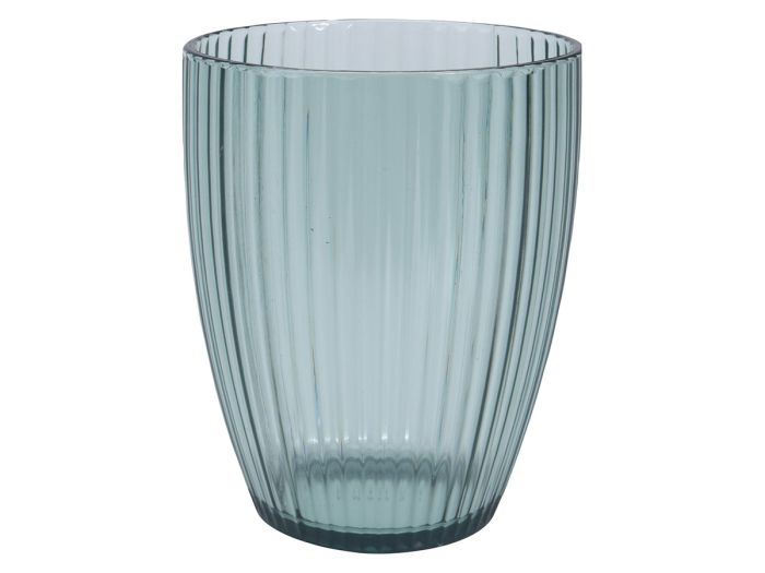 Das Pebel Trinkglas hat ein geripptes Äußeres, eine elegante runde Form und eine schöne transparente blaue Farbe. Das Trinkglas hat einen Durchmesser von 8,5 cm und ist 11 cm hoch.
