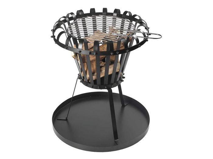 Perel Feuerkorb, Grillrost, Asche-Auffangschale, rund, 53.5 x Ø 50 cm, Schwarz