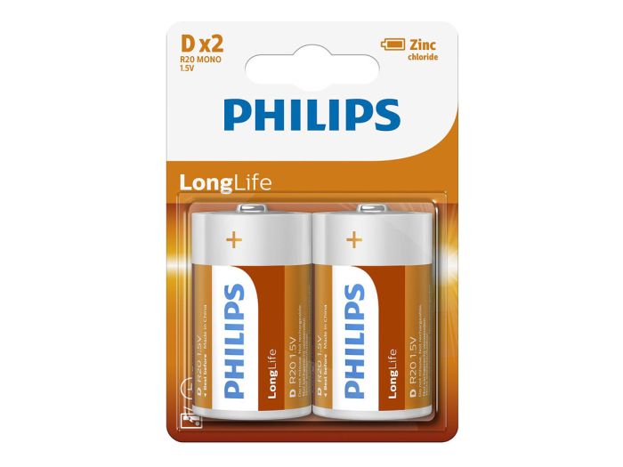 Die Philips LongLife D sind leistungsstarke Batterien im 2-er Pack.