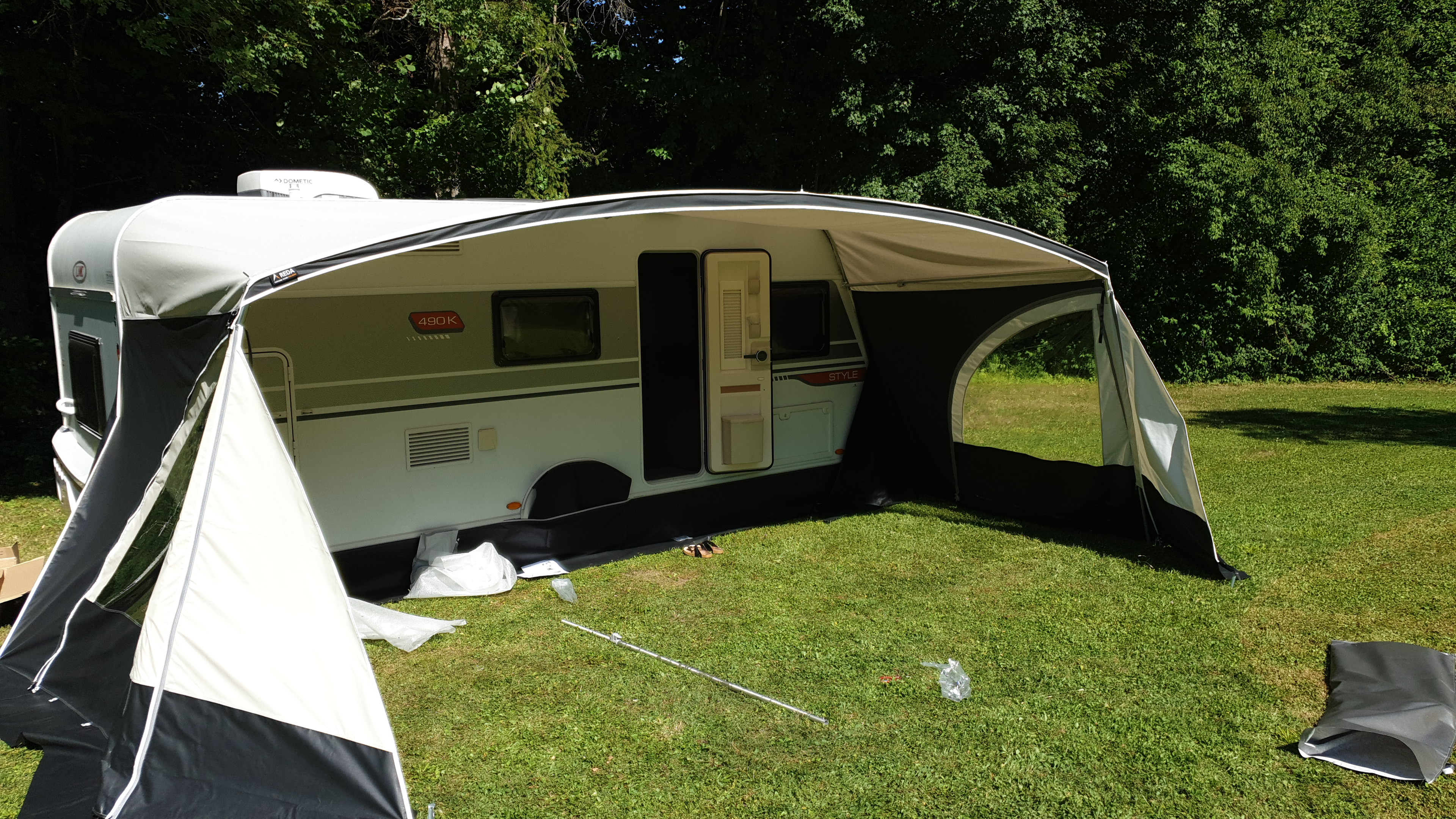 Ein Dachüberstand, der bei den meisten traditionellen Wohnwagenvorzelten erhalten ist.