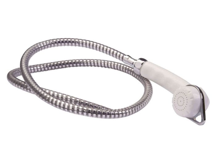 Die verstellbare Dusche hat einen zwei Meter langen Schlauch, der sehr komfortabel zu bedienen ist. An der Oberseite des Duschkopfes befindet sich außerdem eine Öse, an der Sie ihn ganz einfach aufhängen können.