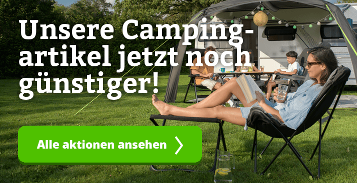 Sie können Ihre Campingausrüstung sowohl online als auch im Geschäft kaufen. Unser Megastore in Winterswijk hat eine Fläche von beeindruckenden 72.500m2 voller Campingartikel. Alle Campingausrüstungen finden Sie hier, und Sie können auch sofort Inspiration sammeln! Möchten Sie die Campingausrüstung lieber von zu Hause aus bestellen? Alle Campingartikel finden Sie auch in unserem Onlineshop.