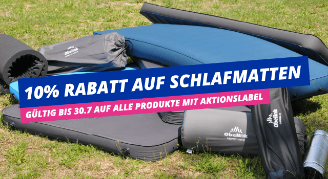 Eine Isomatte oder Camping Schlafmatte ist eine aufrollbare Matratze, die bei Camping- oder Wanderausflügen mitgenommen werden kann. Die Anforderungen an eine Isomatte sind je nach Verwendungszweck unterschiedlich. Die Isomatte sollte bequem, isolierend, leicht, klein, aufrollbar, robust und stabil sein. Obelinks Auswahl ist sehr groß, Schauen Sie selbst: