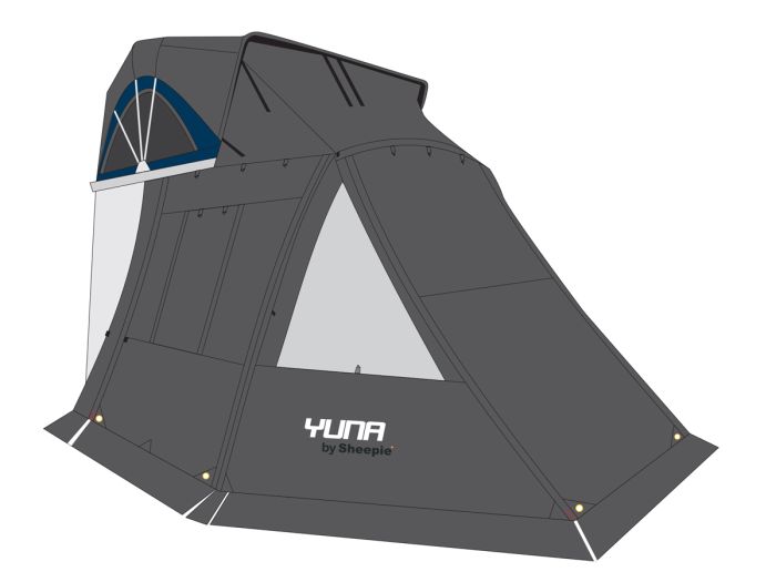 Dieses Vorzelt von Sheepie ist geeignet für das Yuna 160 Dachzelt. Wenn Sie sich während des Urlaubs mehr Schutz oder zusätzlichen Wohnraum wünschen, dann können Sie sich diese Wünsche mit diesem Vorzelt erfüllen. Das Vorzelt ist geeignet für alle Fahrzeuge mit einer Höhe zwischen 170 und 220 cm. Bei schönem Wetter können Sie beide Seitenwände vollständig nach oben rollen.