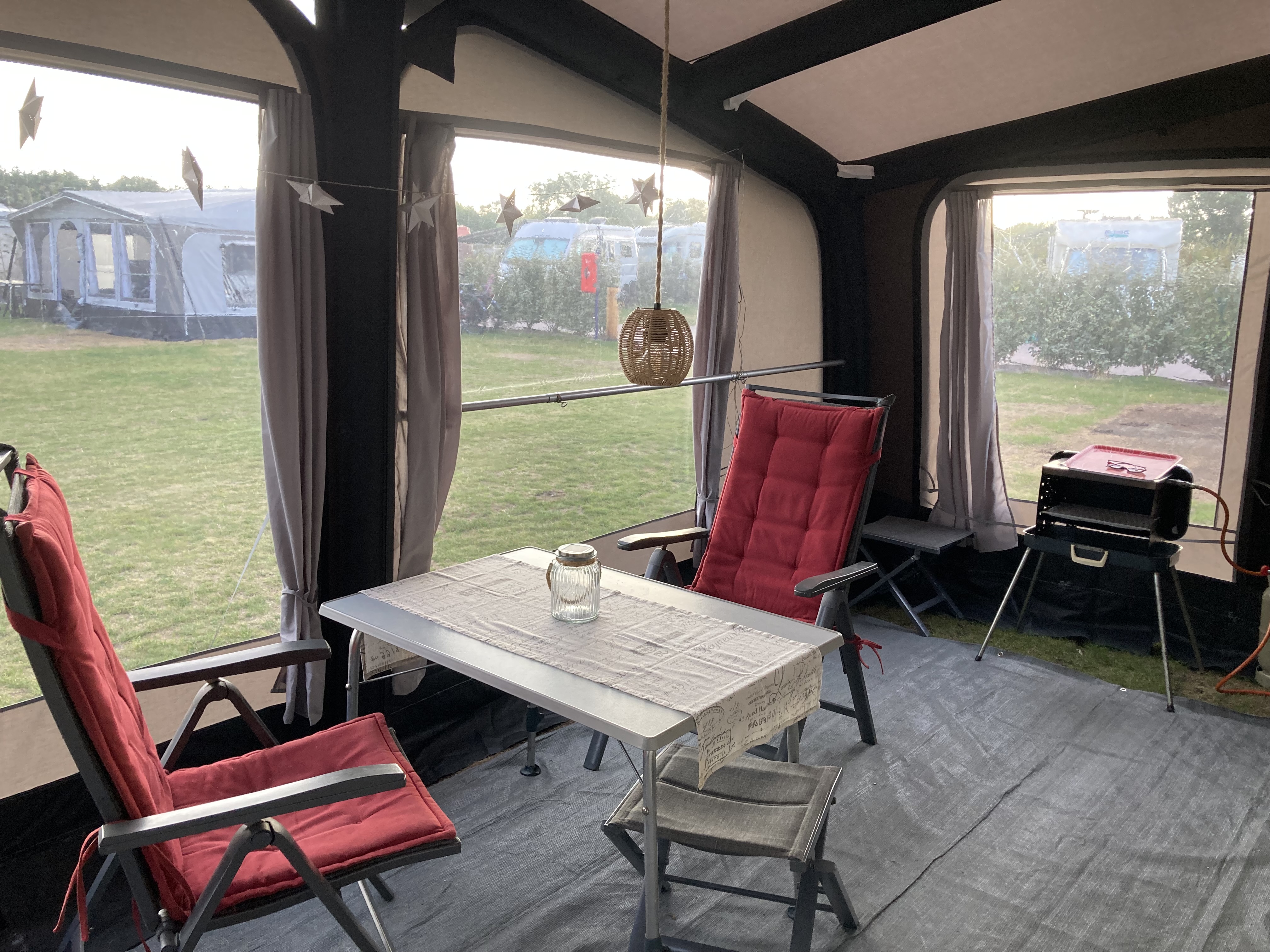 Alle Wände des Telta Lounge können vollständig geöffnet werden. So können Sie das Vorzelt auch als Markise nutzen. Die großen Fenster gewährleisten viel Licht und können mit den mitgelieferten Vorhängen abgedeckt werden.