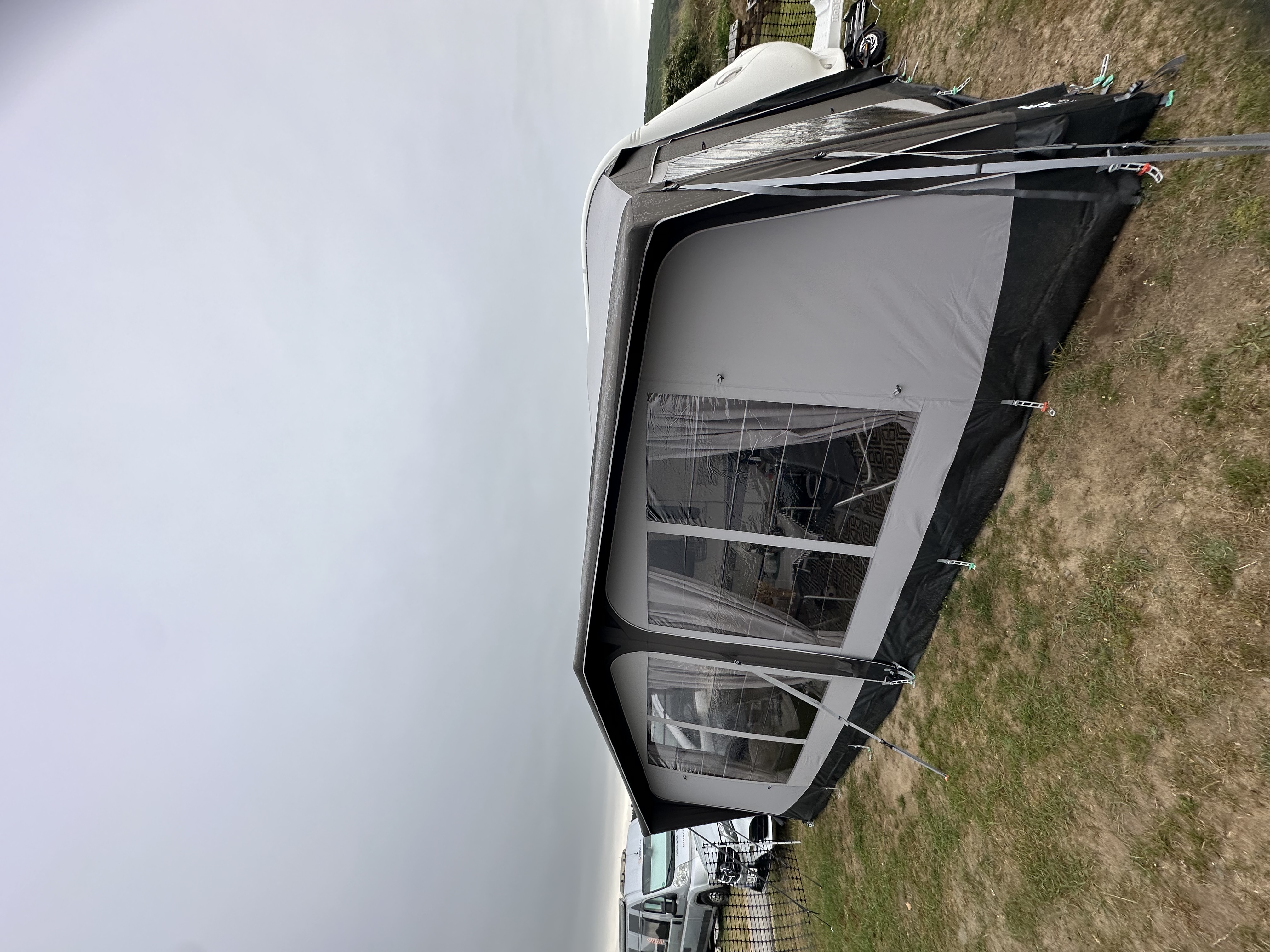 Ein Dachüberstand, der bei den meisten traditionellen Wohnwagenvorzelten erhalten ist.