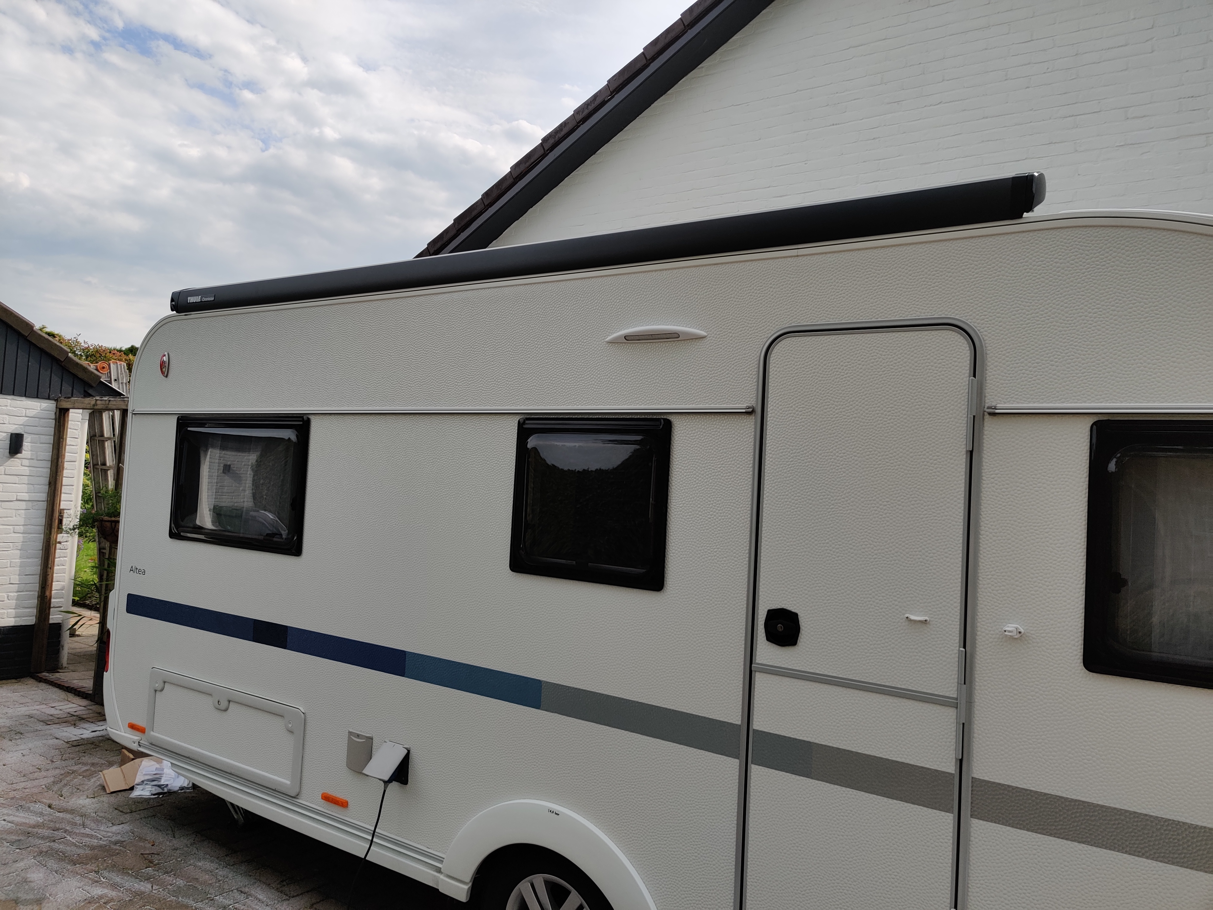 Für Sackmarkisen benötigen Sie keine Adapter. Sie werden mit einer Kederverbindung direkt in die Wohnwagenschiene geschoben.