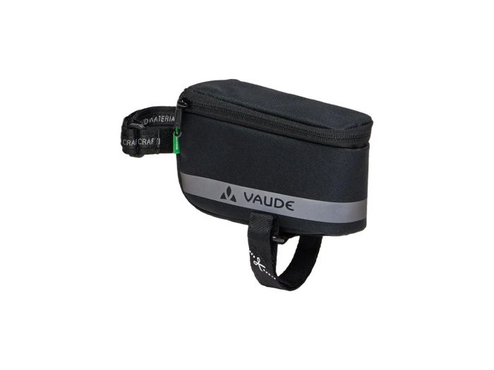 Die Vaude Top Tube Oberrohrtasche – Schwarz ist eine kompakte Fahrradtasche mit einem Fassungsvermögen von 1 Liter, ideal für die Aufbewahrung eines Smartphones mit den Maßen 17 × 8 × 1 cm.